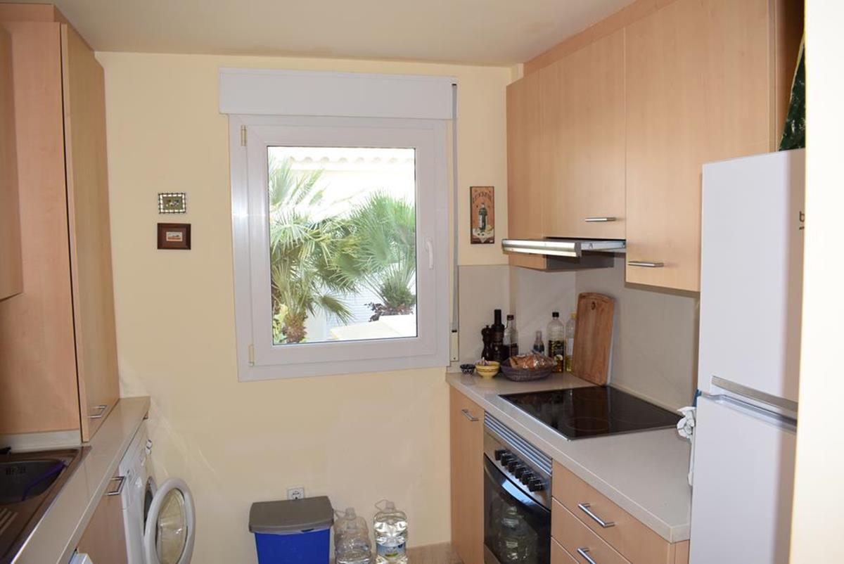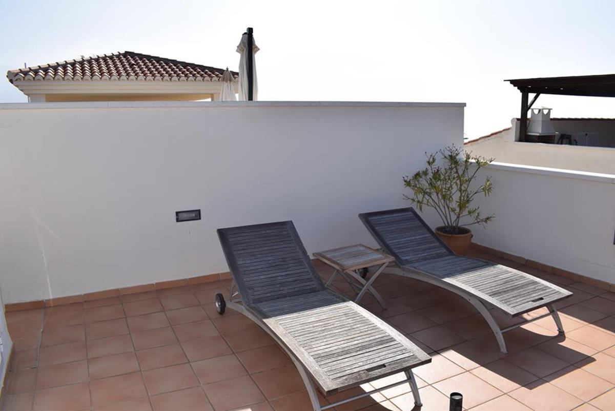 La vivienda se distribuye en dos plantas y cuenta con dos dormitorios, dos baños completos, un amplio salón muy luminoso y una cocina independiente totalmente equipada. Además, dispone de varias terrazas soleadas ideales para relajarse y disfrutar del clima mediterráneo durante todo el año.