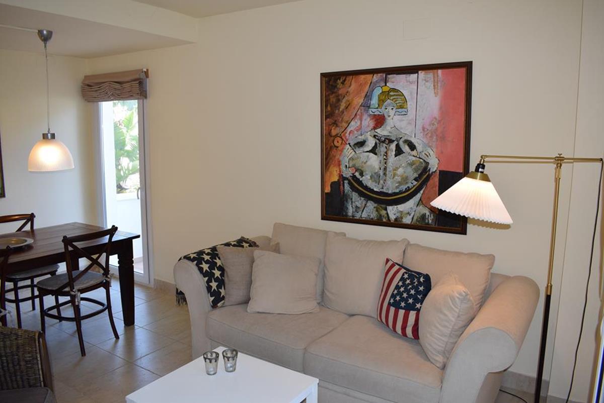 La vivienda se distribuye en dos plantas y cuenta con dos dormitorios, dos baños completos, un amplio salón muy luminoso y una cocina independiente totalmente equipada. Además, dispone de varias terrazas soleadas ideales para relajarse y disfrutar del clima mediterráneo durante todo el año.